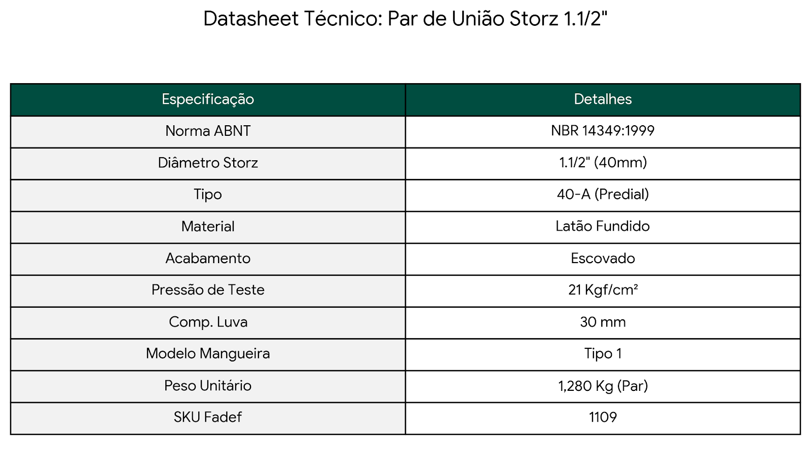 No combate a incêndios, cada segundo é vital. O Par de União Storz 1.1/2" da Fadef é o componente de engenharia indispensável para garantir que suas mangueiras de incêndio sejam conectadas com precisão e rapidez absoluta. Fabricado em latão fundido de alta densidade e acabamento escovado, este item une a durabilidade do metal nobre com a eficiência do engate rápido Storz.